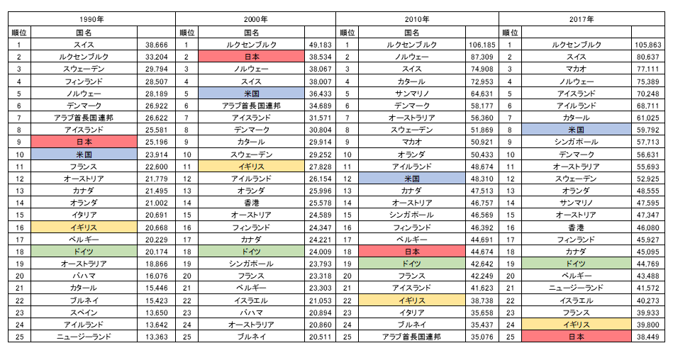 日本の1人あたりGDPの地盤沈下が止まらない。